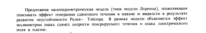 Предложена малопараметрическая модель (типа модели Лоренца), позволяющая описывать эффект генерации сдвигового течения в плазме и жидкости в результате развития неустойчивости РелеяТэйлора. В рамках модели объясняется эффект несимметрии знака сдвига скорости генерируемого течения и знака электрического поля в плазме.