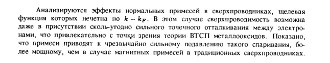 Анализируются эффекты нормальных примесей в сверхпроводниках, щелевая функция которых нечетна по к кр. В этом случае сверхпроводимость возможна даже в присутствии сколь-угодно сильного точечного отталкивания между электронами, что привлекательно с точк,и зрения теории ВТСП металлооксидов. Показано, что примеси приводят к чрезвычайно сильному подавлению такого спаривания, более мощному, чем в случае магнитных примесей в традиционных сверхпроводниках.