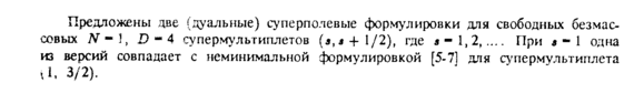 Предложены две (дуальные) суперполевые формулировки для свободных безмассовых ΛΓ-Ϊ, D-4 супермультиплетов (j.j + I/2), где 5-1,2,.... При *-1 одна из версий совпадает с неминимальной формулировкой [5-7] для супермультиплета И, 3/2).
