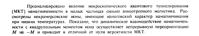 Проанализировано явление макроскопического квантового туннелирования (MKT) намагниченности в малых частицах сильно анизотропного магнетика. Рассмотрены некрамерсовские ионы, имеющие изинговский характер намагничивания при низких температурах. Показано, что динамическое взаимодействие намагниченности с квадрупольным моментом иона осуществляет непрерывную переориентацию Μ на — Μ и приводит к отличной от ir/ля вероятности MKT.