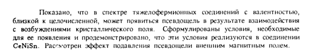 Показано, что в спектре тяжелофермионных соединений с валентностью, близкой к целочисленной, может появиться псевдощель в результате взаимодействия с возбуждениями кристаллического поля. Сформулированы условия, необходимые для ее появления и продемонстрировано, что эти условия реализуются в соединении CcNiSn. Рассмотрен эффект подавления псевдощели внешним магнитным полем.