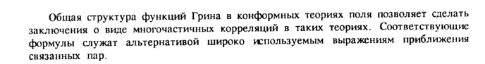 Общая структура функций Грина в конформных теориях поля позволяет сделать заключения о виде многочастичных корреляций в таких теориях. Соответствующие формулы служат альтернативой широко используемым выражениям приближения связанных пар.