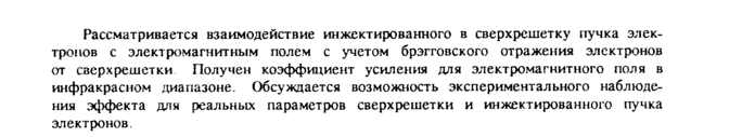 Рассматривается взаимодействие инжектированного в сверхрешетку пучка электронов с электромагнитным полем с учетом брэгговского отражения электронов от сверхрешетки Получен коэффициент усиления для электромагнитного поля в инфракрасном диапазоне. Обсуждается возможность экспериментального наблюдения эффекта для реальных параметров сверхрешетки и инжектированного пучка электронов.