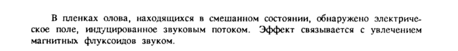 В пленках олова, находящихся в смешанном состоянии, обнаружено электрическое поле, индуцированное звуковым потоком. Эффект связывается с увлечением магнитных флуксоидов звуком.