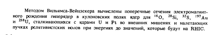 Методом Вильямса-Вейцзекера вычислены поперечные сечения электромагнитного рождения гиперядер в кулоновских полях ядер для l60, 28Si, 32S, ,97Au и U, сталкивающихся с ядрами U и Pt во внешних мишенях и налетающих пучках релятивистских ионов при энергиях до значений, которые будут на RHIC.