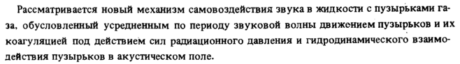 Рассматривается новый механизм самовоздействия звука в жидкости с пузырьками газа, обусловленный усредненным по периоду звуковой волны движением пузырьков и их коагуляцией под действием сил радиационного давления и гидродинамического взаимодействия пузырьков в акустическом поле.