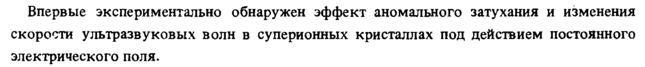 Впервые экспериментально обнаружен эффект аномального затухания и изменения скорости ультразвуковых волн в суперионных кристаллах под действием постоянного электрического поля.
