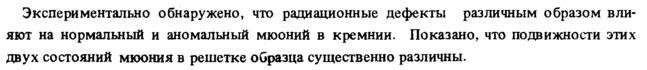 Экспериментально обнаружено, что радиационные дефекты различным образом влияют на нормальный и аномальный мюоний в кремнии. Показано, что подвижности этих двух состояний мюония в решетке образца существенно различны.