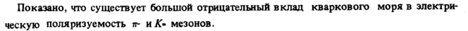 Показано, что существует большой отрицательный вклад кваркового моря в электрическую поляризуемость ли А> мезонов.