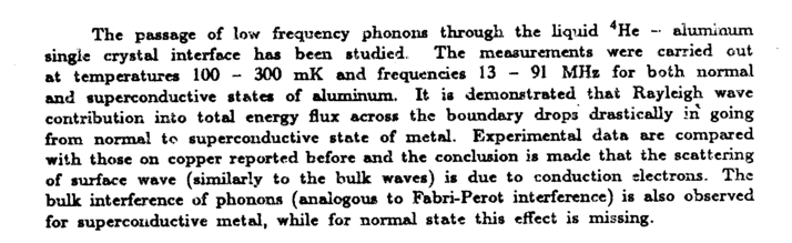 The passage of low frequency phonons through the liquid 4He aluminum single crystal interface has been studied The measurements were carried out at temperatures 100 300 mK and frequencies 13-91 MHz for both normal and superconductive states of aluminum. It is demonstrated that Rayleigh wave contribution into total energy flux across the boundary drop3 drastically in going from normal to superconductive state of metal. Experimental data are compared with those on copper reported before and the conclusion is made that the scattering of surface wave (similarly to the bulk waves) is due to conduction electrons. The bulk interference of phonons (analogous to Fabri-Perot interference) is also observed for superconductive metal, while for normal state this effect is missing.