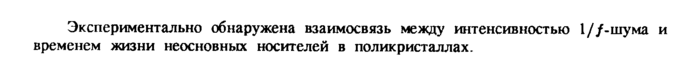Экспериментально обнаружена взаимосвязь между интенсивностью 1 //-шума и временем жизни неосновных носителей в поликристаллах.