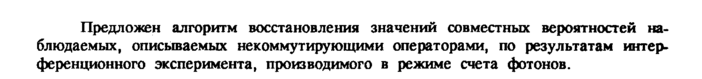 Предложен алгоритм восстановления значений совместных вероятностей наблюдаемых, описываемых некоммутирующими операторами, по результатам интерференционного эксперимента, производимого в режиме счета фотонов.