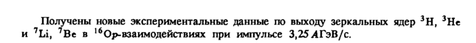 Получены новые экспериментальные данные по выходу зеркальных ядер 3Н, 3Не и 7Li, 7Ве в ,6Ор-взаимодействиях при импульсе 3,25АГэВ/с.