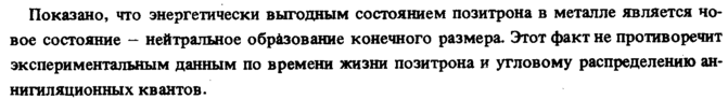 Показано, что энергетически выгодным состоянием позитрона в металле является новое состояние нейтральное образование конечного размера. Этот факт не противоречит экспериментальным данным по времени жизни позитрона и угловому распределению ан-нигиляционных квантов.