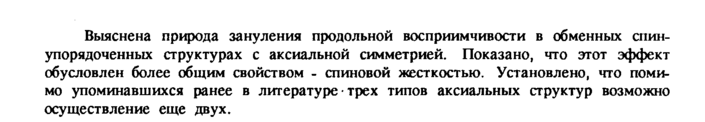 Выяснена природа зануления продольной восприимчивости в обменных спин-упорядоченных структурах с аксиальной симметрией. Показано, что этот эф4юкт обусловлен более общим свойством спиновой жесткостью. Установлено, что помимо упоминавшихся ранее в литературе ■ трех типов аксиальных структур возможно осуществление еще двух.