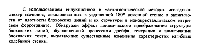 С использованием индукционной и магнитооптической методик исследован спектр магнонов, локализованных в уединенной 180° доменной стенке в зависимости от плотности блоховских линий и их структуры в монокристаллическом иттри-евом феррогранате. Обнаружен эффект динамического преобразования структуры блоховских линий, обусловленный процессами дрейфа, генерации и аннигиляции блоховских точек, вызывающих существенные изменения характеристик изгибных колебаний стенки.