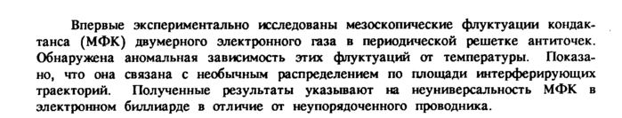 Мезоскопические флуктуации кондактанса в электронном биллиарде