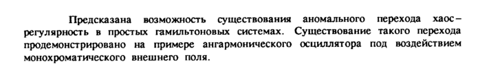 Предсказана возможность существования аномального перехода хаос-регулярность в простых гамильтоновых системах. Существование такого перехода продемонстрировано на примере ангармонического осциллятора под воздействием монохроматического внешнего поля.