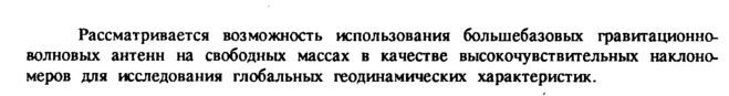 Рассматривается возможность использования большебазовых гравитационно-волновых антенн на свободных массах в качестве высокочувствительных наклономеров для исследования глобальных геодинамических характеристик.