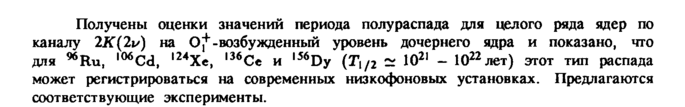 Получены оценки значении периода полураспада для целого ряда ядер по каналу 2К(2и) на О ^-возбужденный уровень дочернего ядра и показано, что для %Ru, ,06Cd, ,24Хе, ,36Се и l56Dy (Т1/2 ~ 1021 1022лет) этот тип распада может регистрироваться на современных низкофоновых установках. Предлагаются соответствующие эксперименты.