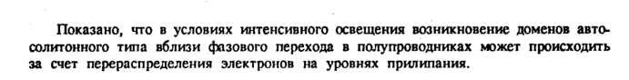 Показано, что в условиях интенсивного освещения возникновение доменов авто-солитонного типа вблизи фазового перехода в полупроводниках может происходить за счет перераспределения электронов на уровнях прилипания.