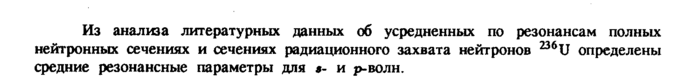 Из аналгаа литературных данных об усредненных по резонансам полных нейтронных сечениях и сечениях радиационного захвата нейтронов 236U определены средние резонансные параметры для аи р-волн.