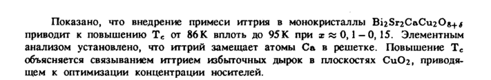 Влияние иттрия на повышение Тс кристалла Bi(2212)