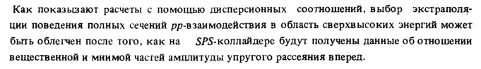 Как показызают расчеты с помощью дисперсионных соотношений, выбор экстраполяции поведения полных сечений рр-взаимо действия з область сверхвысоких энергий может быть облегчен после того, как на SPS-коллайдере будут получены данные об отношении вещественной и мнимой частей амплитуды упругого рассеяния вперед.