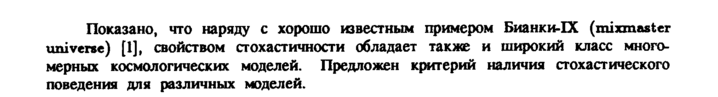 Показано, что наряду с хорошо известным примером Бианки-ЕХ (mixmaster universe) [1], свойством стохастичности обладает также и широкий класс многомерных космологических моделей. Предложен критерий наличия стохастического поведения для различных моделей.