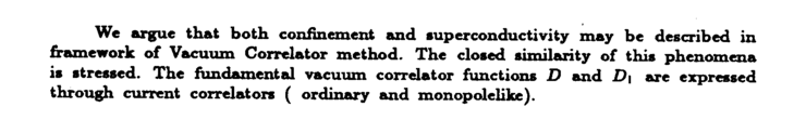 We argue that both confinement and superconductivity may be described in framework of Vacuum Correlator method. The closed similarity of this phenomena is stressed. The fundamental vacuum correlator functions D and D\ are expressed through current correlators ( ordinary and monopolelike).