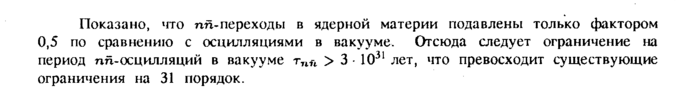 Показано, что nn-переходы в ядерной материи подавлены только фактором 0,5 по сравнению с осцилляциями в вакууме. Отсюда следует ограничение на период nn-осцилляций в вакууме тпП> 3 · 1031 лет, что превосходит существующие ограничения на 31 порядок.