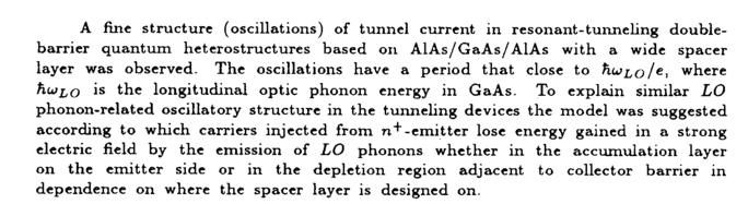 A fine structure (oscillations) of tunnel current in resonant-tunneling double-barrier quantum heterostructures based on AlAs/GaAs/AlAs with a wide spacer layer was observed. The oscillations have a period that close to where Λωχ,ο is the longitudinal optic phonon energy in GaAs. To explain similar LO phonon-related oscillatory structure in the tunneling devices the model was suggested according to which carriers injected from n+ -emitter lose energy gained in a strong electric field by the emission of LO phonons whether in the accumulation layer on the emitter side or in the depletion region adjacent to collector barrier in dependence on where the spacer layer is designed on.