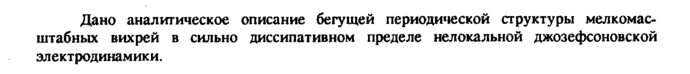 Дано аналитическое описание бегущей периодической структуры мелкомасштабных вихрей в сильно диссипативном пределе нелокальной джозефсоновской электродинамики.