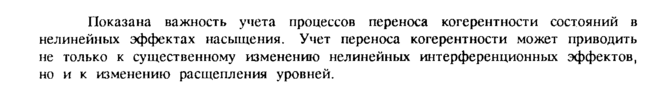 Показана важность учета процессов переноса когерентности состояний в нелинейных эффектах насыщения. Учет переноса когерентности может приводить не только к существенному изменению нелинейных интерференционных эффектов, но и к изменению расщепления уровней.