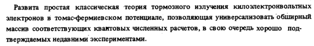 Развита простая классическая теория тормозного излучения килоэлектронвольтных электронов в томас-фермиевском потенциале, позволяющая универсализовать обширный массив соответствующих квантовых численных расчетов, в свою очередь хорошо подтверждаемых недавними экспериментами.