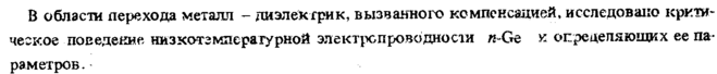 В области перехода металл диэлектрик, вызванного компенсацией, исследовано критическое поведение низкотемпературной электропроводности я определяющих ее параметров.