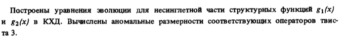 Построены уравнения эволюции для несинглетной части структурных функций gifx) и g2(x) в КХД. Вычислены аномальные размерности соответствующих операторов твиста 3.