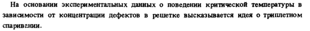 На основании эксперт ментальных данных о поведении критической температуры в зависимости от концентрации дефектов в решетке высказывается идея о триплетном спаривании.