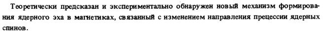 Теоретически предсказан и экспериментально обнаружен новый механизм формирования ядерного эха в магнетиках, связанный с изменением направления прецессии ядерных спинов.