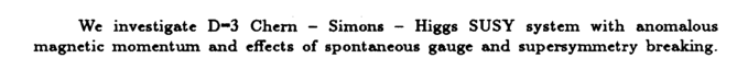 We investigate D-3 Chern Simons Higgs SUSY system with anomalous magnetic momentum and effects of spontaneous gauge and supersymmetry breaking.