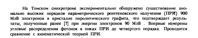 На Томском синхротроне экспериментально обнаружено существование аномально высоких порядков параметрического рентгеновского излучения (ПРИ) 900 МэВ электронов в кристалле пиролйтического графита, что подтверждает результаты, полученные ранее [7] при энергии электронов 90 МэВ . Впервые измерены угловые распределения фотонов в пиках ПРИ до четвертого порядка. Проводится сравнение с кинематической теорией ПРИ.