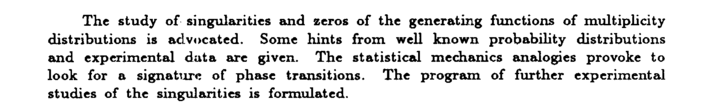 The study of singularities and zeros of the generating functions of multiplicity distributions is advocated. Some hints from well known probability distributions and experimental data are given. The statistical mechanics analogies provoke to look for a signature of phase transitions. The program of further experimental studies of the singularities is formulated.
