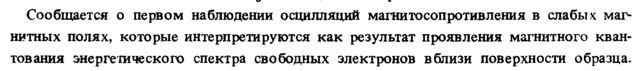 Сообщается о первом наблюдении осцилляций магнитосопротивления в слабых магнитных полях, которые интерпретируются как результат проявления магнитного квантования энергетического спектра свободных электронов вблизи поверхности образца.