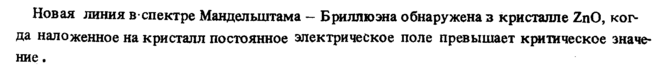 Новая линия в спектре Мандельштама Бриллюэна обнаружена з кристалле ZnO, когда наложенное на кристалл постоянное электрическое поле превышает критическое значение .