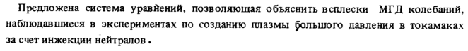 Предложена система уравнений, позволяющая объяснить всплески МГД колебаний, наблюдавшиеся в экспериментах по созданию плазмы большого давления в токамаках за счет инжекции нейтралов .