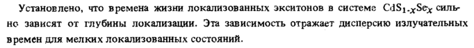 Установлено, что времена жизни локализованных экситонов в системе CdSi^Se^ сильно зависят от глубины локализации. Эта зависимость отражает дисперсию излучательных времен для. мелких локализованных состояний.