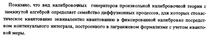 Показано, что вид калибровочных генераторов произвольной калибровочной теории с замкнутой алгеброй определяет семейство диффузионных процессов, для которых стохастическое квантование эквивалентно квантованию в фиксированной калибровке посредством континуального интеграла, построенного в лагранжевом формализме с учетом квантовой меры.