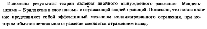 Изложены результаты теории явления двойного вынужденного рассеяния Мандельштама Бриллюэна в слое плазмы с отражающей задней границей. Показано, что новое явление представляет собой эффективный механизм колли ми ров анного отражения, при котором обычное зеркальное отражение сменяется отражением назад.