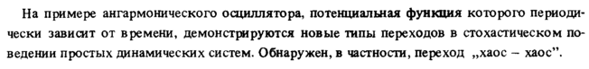 На примере ангармонического осциллятора, потенциальная функция которого периодически зависит от времени, демонстрируются новые типы переходов в стохастическом поведении простых динамических систем. Обнаружен, в частности, переход „хаос хаос".