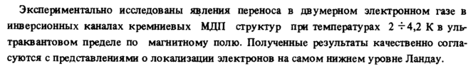 Ультраквантовый предел холловской проводимости двумерного электронного газа на поверхности кремния